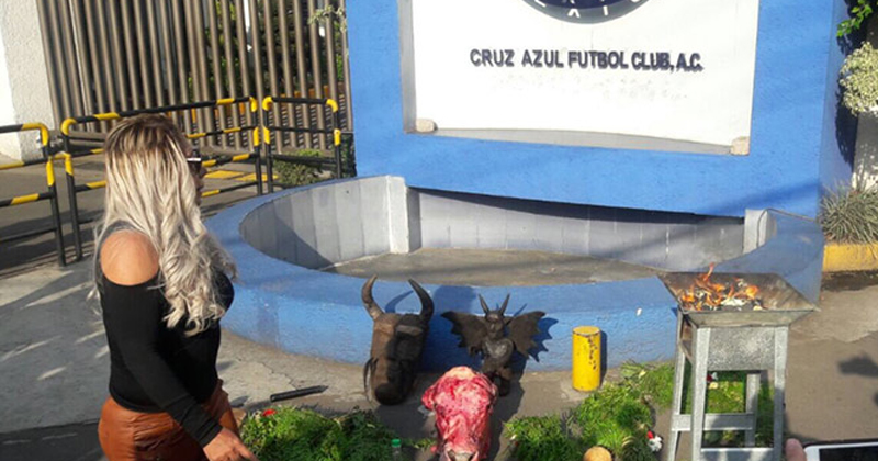Afuera de las instalaciones de La Noria, la bruja Zulema llevó a cabo una limpia con la intención de mejorar la fortuna del equipo celeste