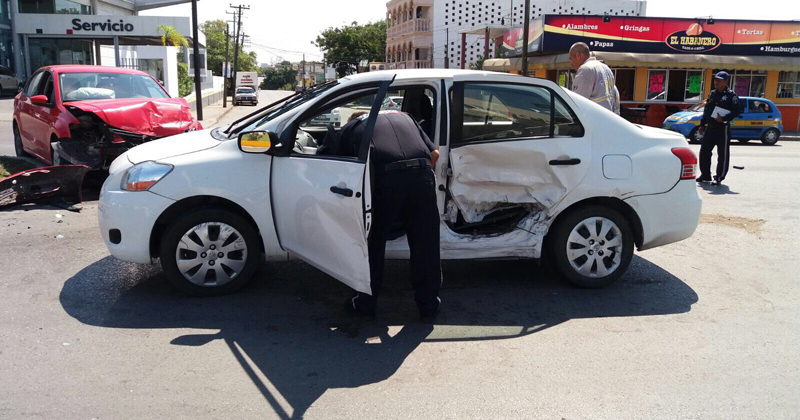 Un automóvil Volkswagen Rojo y un Toyota blanco de modelo reciente resultaron involucrados