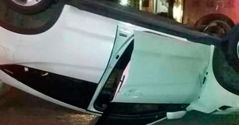 El automovilista perdió el control del volante, impactó un poste y volcó