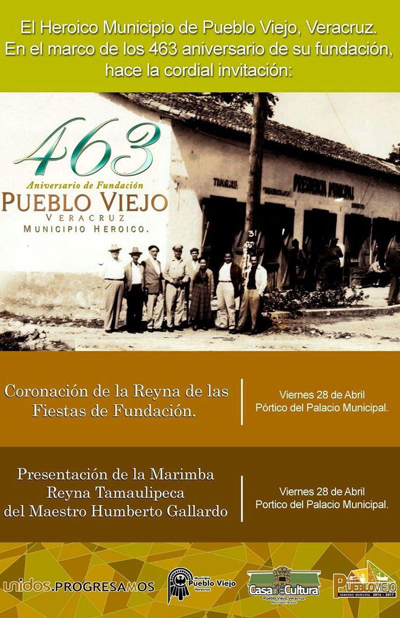 PUEBLO VIEJO, Tamaulipas.- Con un extenso programa de actividades que ira desde actos cívicos, muestras gastronómicas, recorridos en lancha, eventos deportivos y hasta un baile popular el heroico municipio de Pueblo Viejo se viste de fiesta al celebrar el «463 Aniversario de su Fundación.