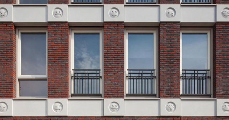 El arquitecto creó moldes de los emojis y los colocó en las esquinas de un edificio