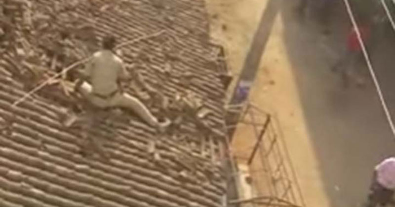En las imágenes captadas se observa a un hombre evitar el ataque de este felino al saltar desde la parte más alta