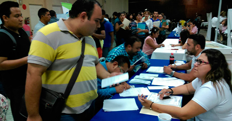 En la mesa de atención instalada en la Feria del Empleo que se realiza en el municipio, hay una enorme fila que espera dejar su solicitud de empleo.