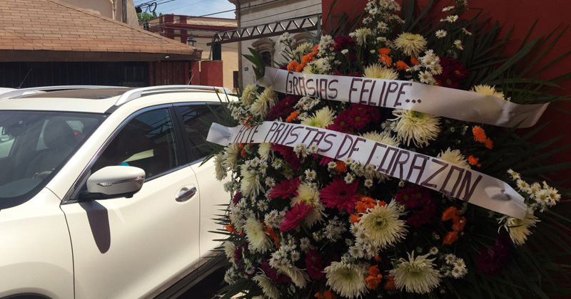 “Gracias Felipe… Atte priistas de corazón”, se leía en la corona de flores que fue depositada cerca de la camioneta del ahora ex priista.