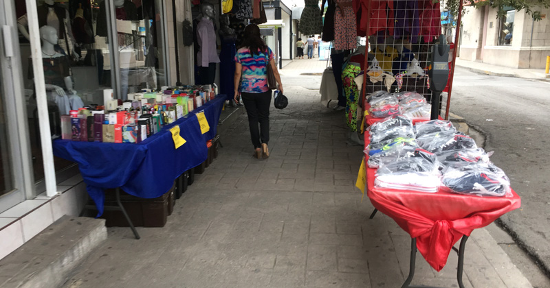 CIUDAD VICTORIA, Tamaulipas.- En el primer día de la campaña «El Mejor Puente» que organiza la Cámara Nacional de Comercio, la principal avenida comercial de Victoria, la calle Hidalgo lució con poco movimiento de consumidores, y al menos cerca de un 50 por ciento de los negocios no portaron los carteles publicitarios que los identifican como participantes.