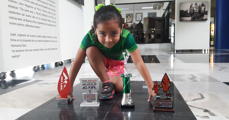 La pequeña de seis años platica que de grande quiere ser la mejor corredora del mundo, y superar a su ídolo, Ana Gabriela Guevara, quien se puso en contacto