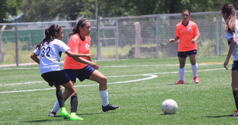 Apenas eran las diez de la mañana y en Victoria ya se sentían alrededor de 33 grados cuando empezó la actividad en el fútbol femenil al norte de la ciudad en una cancha de pasto sintético, que por su misma condición provocó que el calor se sintiera aún más fuerte dentro del terreno de juego.