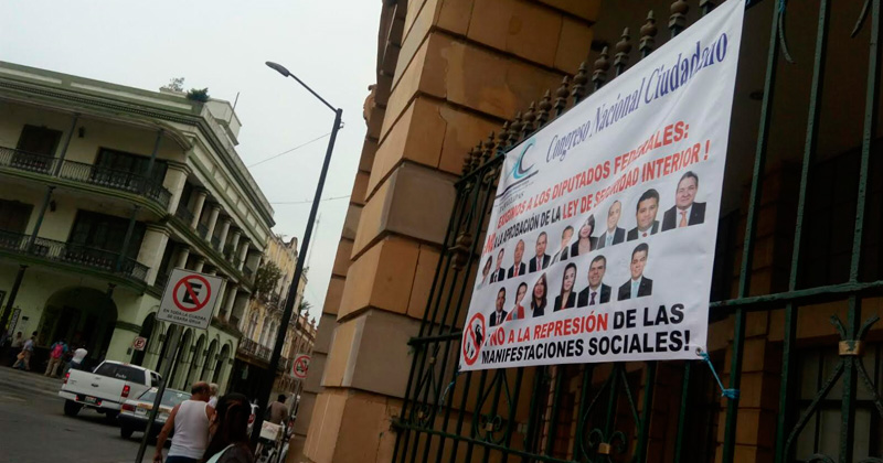 TAMPICO, Tamaulipas.- El Consejo Nacional Ciudadano colocó mantas en algunas sedes federales como la Secretaría de Hacienda en Tampico como parte de las acciones que están realizando para manifestarse ahora en contra de la Ley de Seguridad Interior a la que consideran lesiona los derechos ciudadanos.