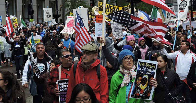 En Chicago, Illinois, miles de personas salieron a la calle con llamadas a «detener el muro», y pancartas que pedían «santuario para todos» y exhortando a los inmigrantes a «resistir el racismo».