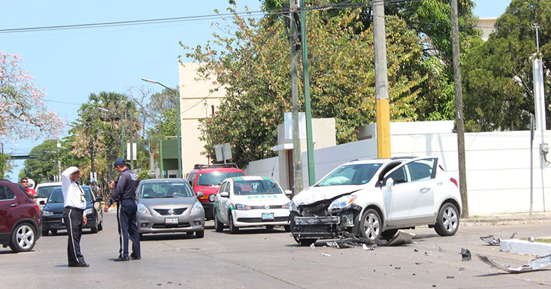 El exceso de velocidad fue el causante del percance entre dos camionetas, una de ellas se proyecto contra dos postes, derribando uno de ellos