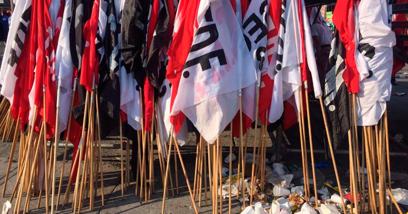La concentración del sindicalismo corporativo sólo duró 28 minutos; con tres oradores breves