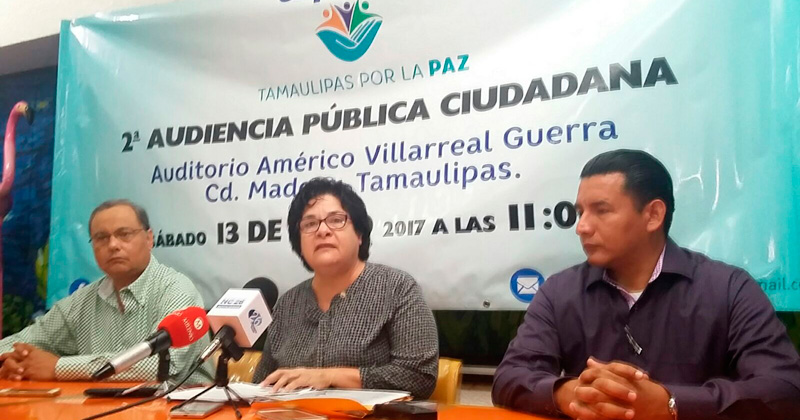 TAMPICO, Tamaulipas.- La organización “Tamaulipas por la Paz” está convocando a los 15 diputados federales de Tamaulipas a la Segunda Audiencia Pública Ciudadana que se realizará el sábado 13 de mayo en ciudad Madero.