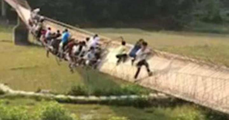 El incidente se reportó en el sureste de China, donde un grupo de personas caminaba sobre el puente en Meiling Lion Peak cuando uno de los lados se soltó