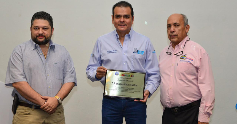 El presidente municipal, Enrique Rivas recibió un reconocimiento de la Cadena Turística Nuevo Laredo por el impulso que ha dado a los vuelos directos Nuevo Laredo-Cancún
