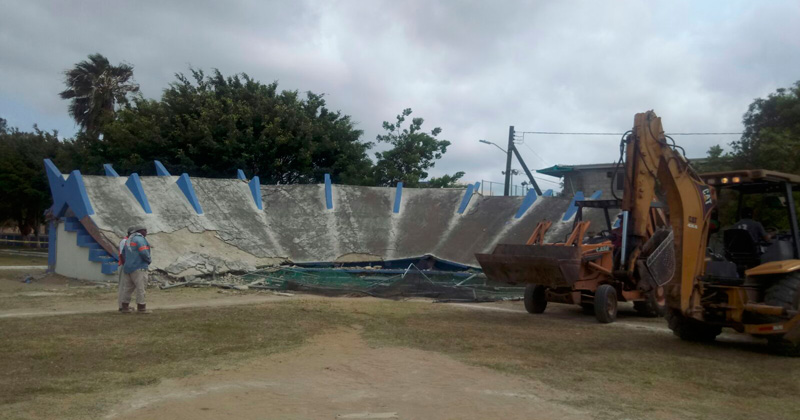 CIUDAD MADERO, Tamaulipas.- Las malas condiciones en que se encontraba y el fuerte norte registrado este jueves, ocasionaron que se cayera el techo de las gradas de un campo de beisbol.