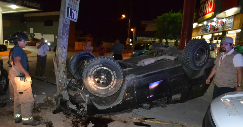 Ve a la novia con otro, la sigue, pero al pasar un tope pierde control, quiebra un poste y ‘maromea’