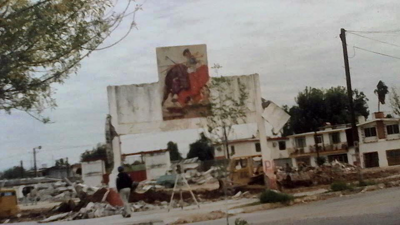 Hoy se erige un centro comercial de la familia Charur. El entonces presidente municipal, Ramón Durón Ruiz, rescató el mural de mosaico veneciano con la estampa del matador Carlos Arruza, que a manera de homenaje o ironía, yace en lo alto de una pared al fondo de la tienda GranD… «Toreo».