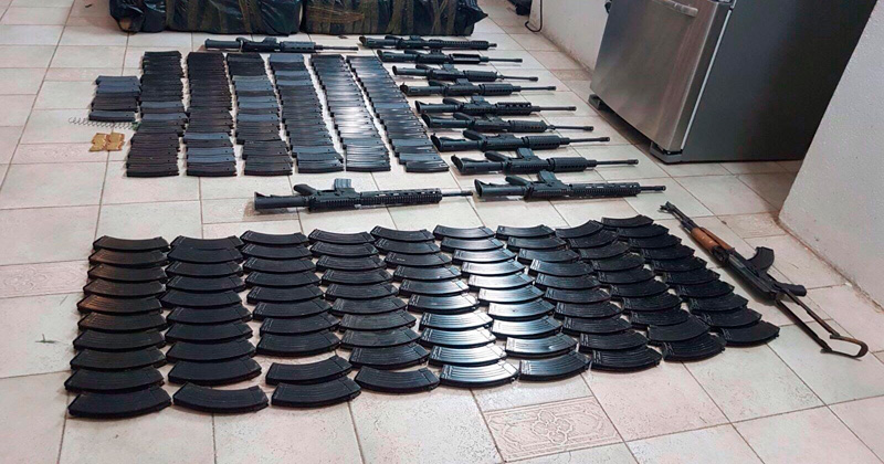 Se hallaron once armas largas tipo AR-15 y una AK-47 así como cargadores y cartuchos. No hubo detenidos.