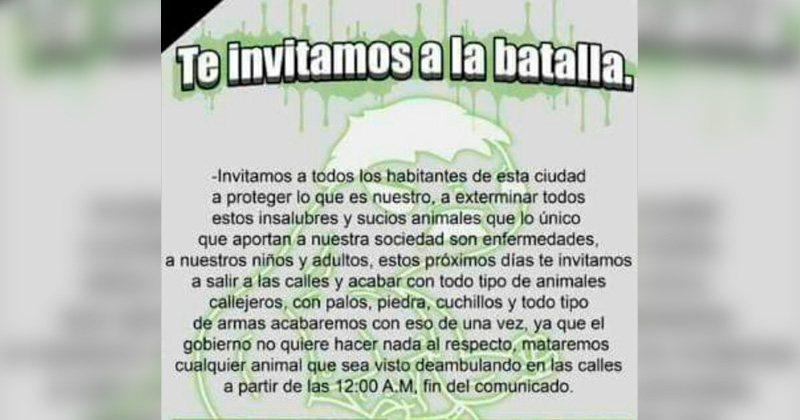 A partir de medianoche amenazan con matar animales que se encuentren sueltos en la calle por “limpieza”