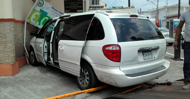 Tras el percance, la camioneta se proyectó contra la barda de un primaria derribando una barda de contención