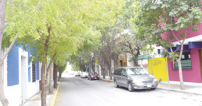 La cuadra del 15 y 16 Zaragoza es un lugar hermoso: un barrio antiguo que sus vecinos han cuidado y con bellas fachadas y una bóveda formada con ramas de ficus, neems y jaboncillos que la CFE pretende podar «por sus pistolas»