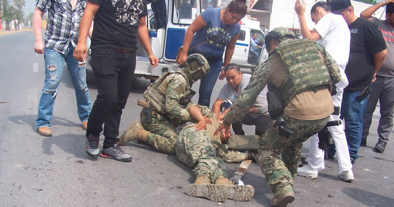 Un helicóptero de la marina aterrizo en pleno centro de la ciudad sobre la Avenida Francisco I Madero alrededor de las 3 de la tarde con 40 minutos para llevarse a los elementos heridos y darles atención médica.