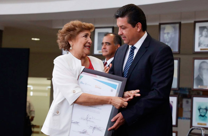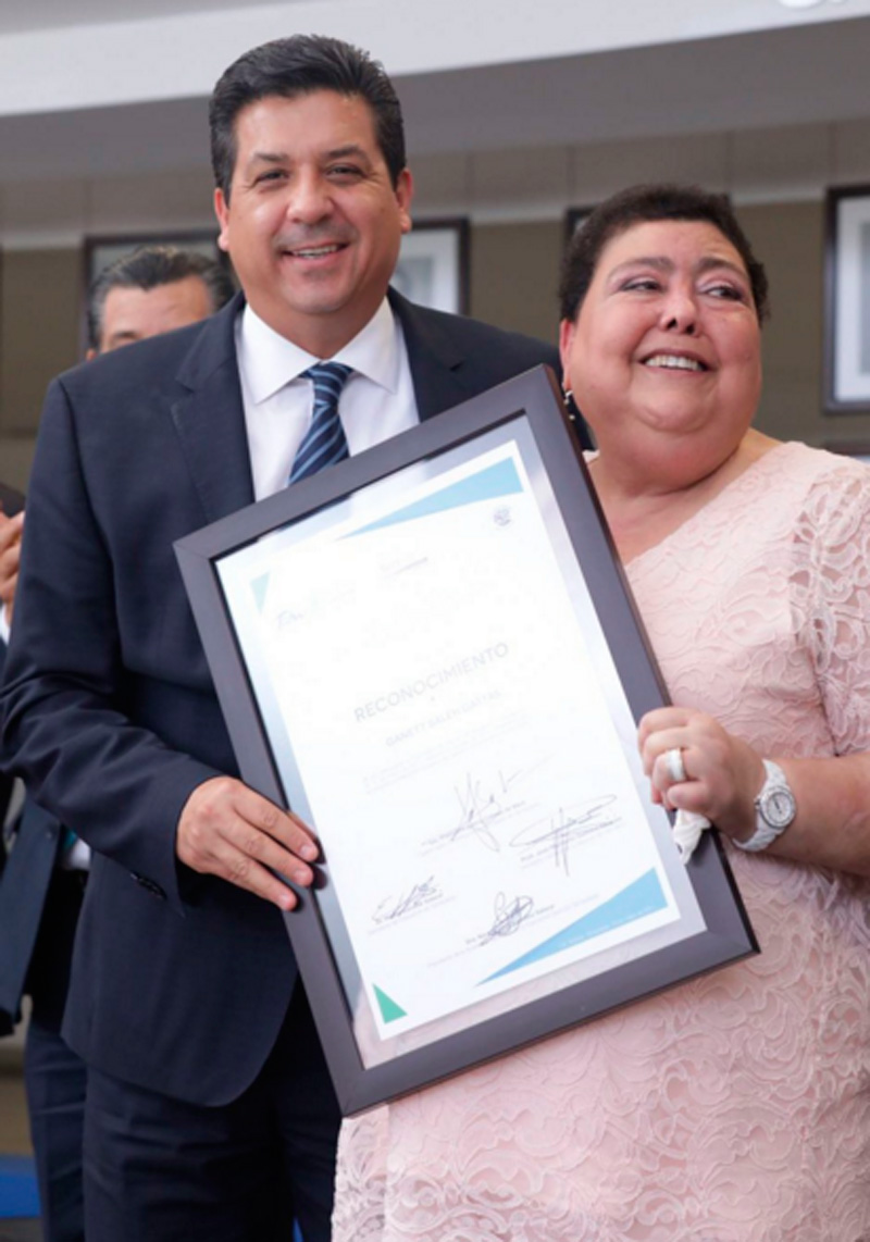 El Gobernador Francisco García Cabeza de Vaca reconoció la labor de Saleh Gattás, así como de la maestra Emita Margarita Peña Vélez, y la maestra Herlinda Ramírez.
