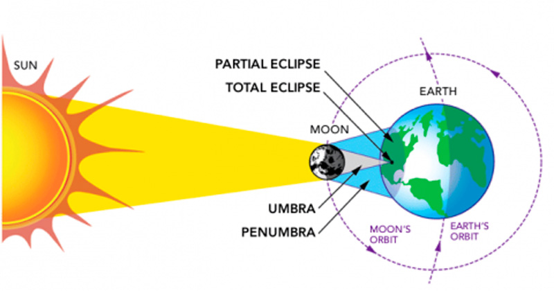 En este evento la luna quedará en medio de la Tierra y el Sol y durará mínimo tres horas, aunque el periodo máximo en que el satélite de nuestro planeta cubrirá la estrella será de hasta 40 minutos.