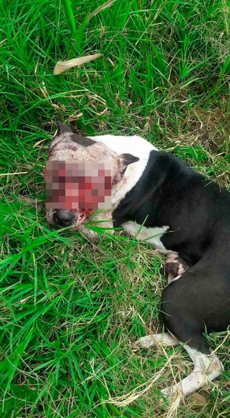 Tras recorrer la colonia, el dueño de la perrita de la raza pitbull, la encontró moribunda en un terreno baldío, tenía el rostro desfigurado tras haber recibido varios machetazos.