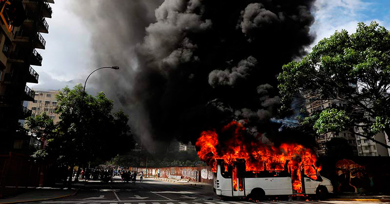 Al menos 51 autobuses fueron incendiados durante una de las decenas de protestas contra el gobierno de Nicolás Maduro