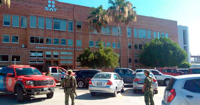 NUEVO LAREDO, Tamaulipas.- A las 9:30 de la mañana de este miércoles, se registro gran movilización y desalojo de personal, del edificio del Servicio de Administración Tributaria (SAT), tras recibiese una amenaza de bomba.