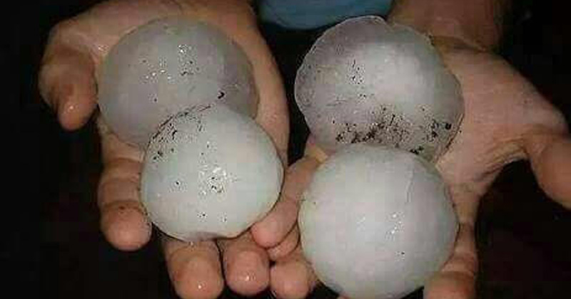 A través de redes sociales circula un video donde se ven las esferas de hielo del tamaño de pelotas de golf