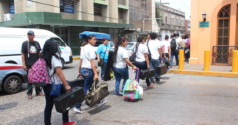 Los estudiantes que forman las bandas musicales de marcha participarán en eventos programados a realizarse en este puerto, en la noche de este sábado.