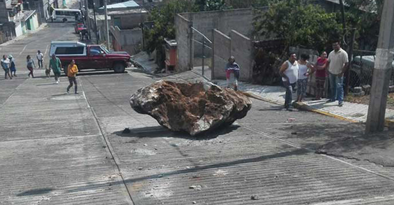 La roca de más de 100 kilos de peso causó daños en al menos cuatro vehículos y una vivienda en Tulancingo