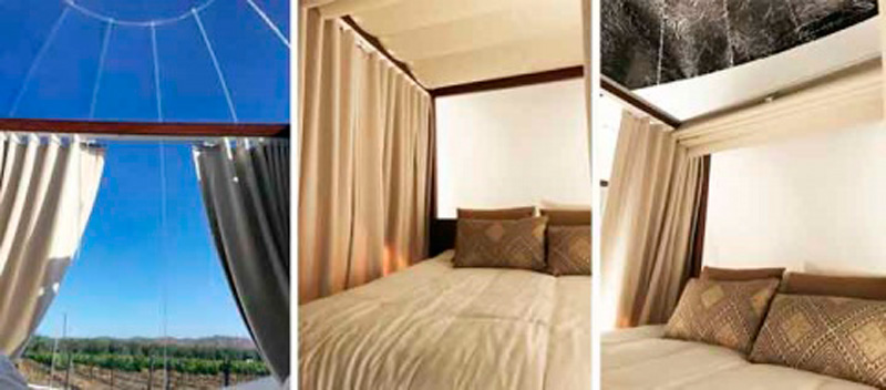 El hotel Campera cuenta con 10 habitaciones en forma de burbuja, todas ubicadas en un viñedo de Valle de Guadalupe, en Ensenada, Baja California.