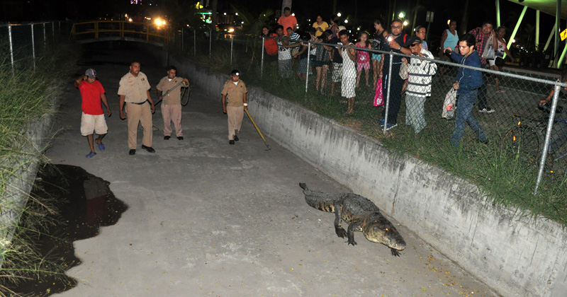 Hasta ese sito se trasladaron varios elementos quienes ya tienen experiencia para someter a esos animales que suelen salir de la Laguna del Carpintero para llegar a las colonias aledañas a través del sistema de canales pluviales.