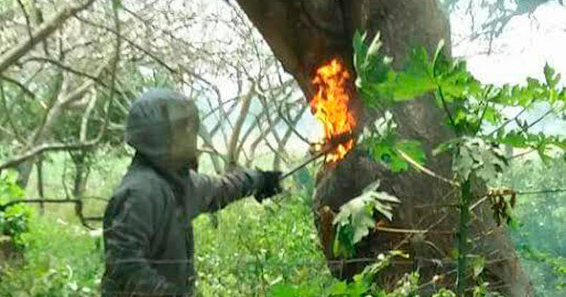 Bomberos atendieron el incidente localizando el enorme enjambre dentro de un árbol seco