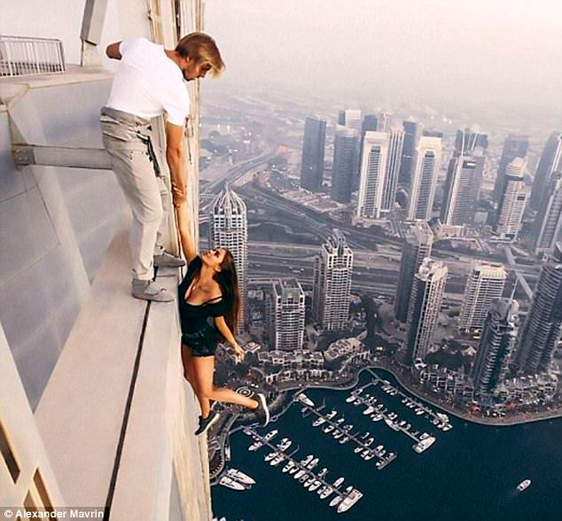 Estos intentos vienen de una oleada a temerarios jóvenes que suben a alturas sumamente grandes de estructuras y exponen su intrepidez al colgarse de una mano. El hombre es visto abriéndose paso a través de la cima del puente, balanceándose con sus brazos de la estructura.