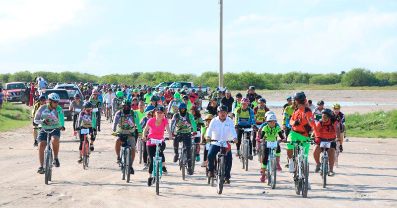 Realizando exitoso recorrido por campos pesqueros de la Laguna Madre en el que participan más de 300 ciclistas de diferentes ciudades