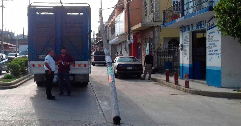 Camión tumba poste de teléfonos