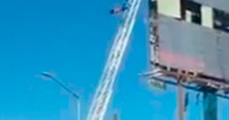 Durante varios minutos socorristas trataron de convencerlo para que bajara del anuncio