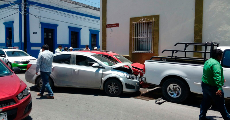 Un sedán se pasa un alto y los embiste para ambos vehículos proyectarse contra una camioneta estacionada