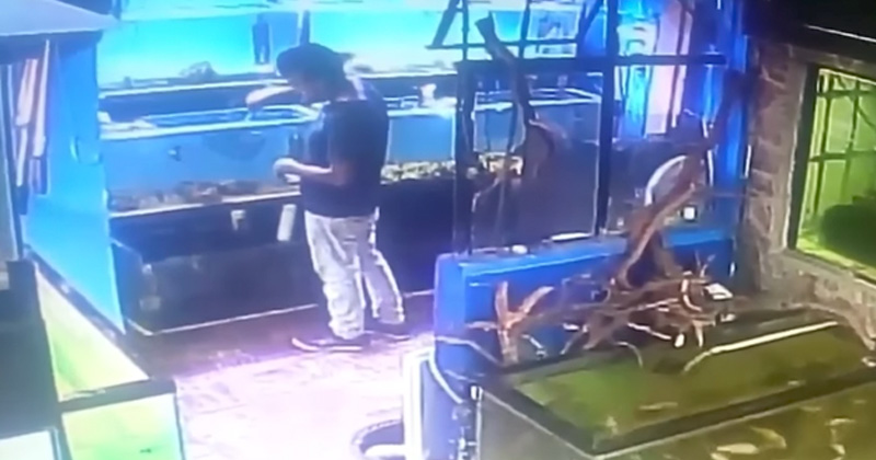 Al ver que no había nadie en el local, el individuo sacó un pez y lo guardó en la bolsa de su pantalón