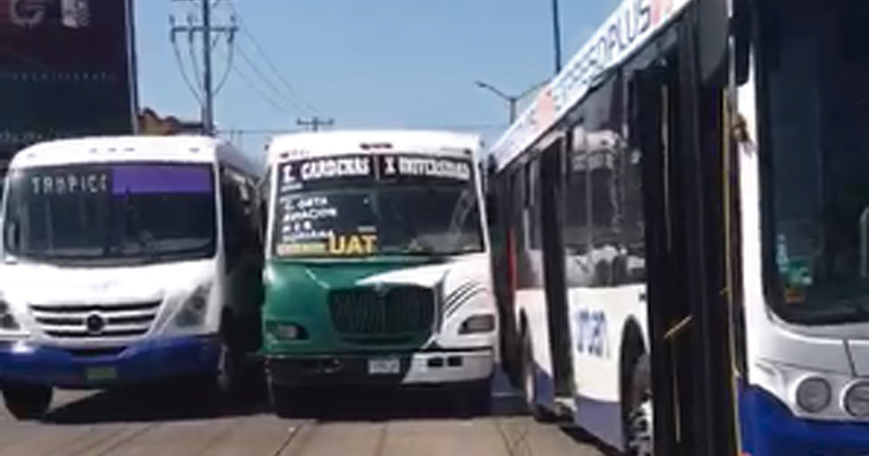 Tres unidades del transporte público impactaron esta tarde en la colonia Diaz Ordaz