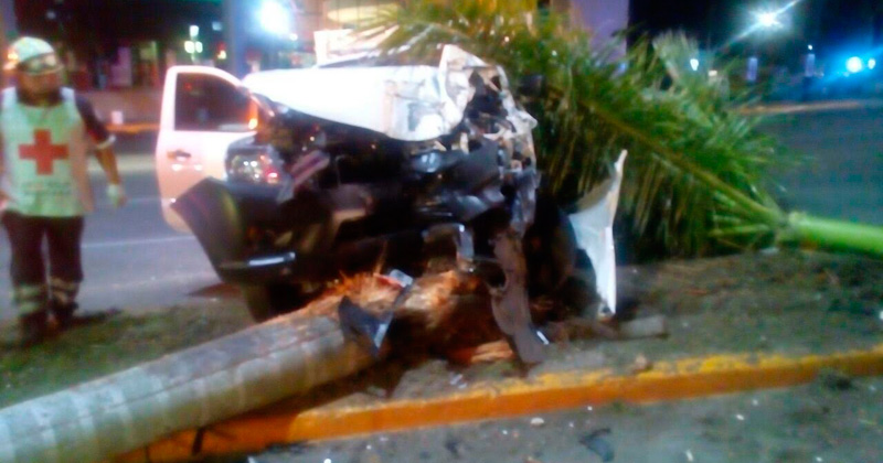 Y el tercer percance se desarrolló a las 03:50 horas, en el carril de sur a norte de la Avenida Hidalgo, esquina con Agua Dulce, en donde una camioneta Nissan, color blanca, tipo estaquitas, se impactó en contra de una palmera ubicada sobre el camellón central, a la que derribó, percance en el que resultaron lesionados el conductor y su acompañante.
