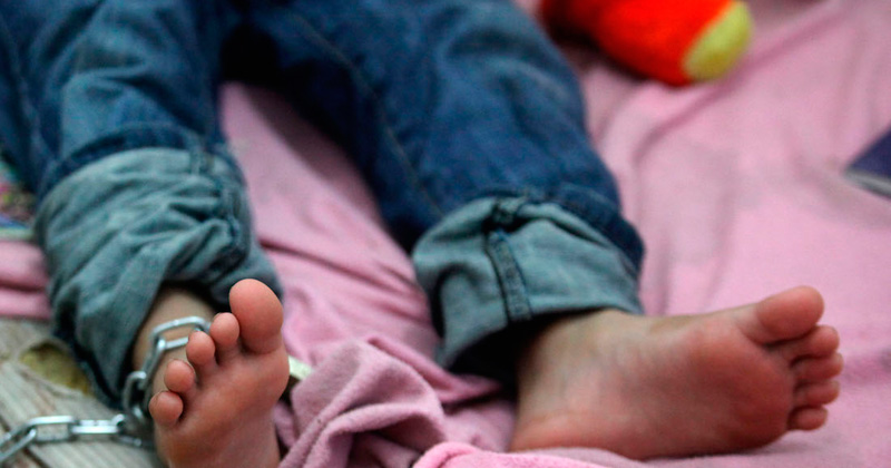 Fue encontrado desnudo, con cinta canela en el cuello y encadenado de los pies a una banca