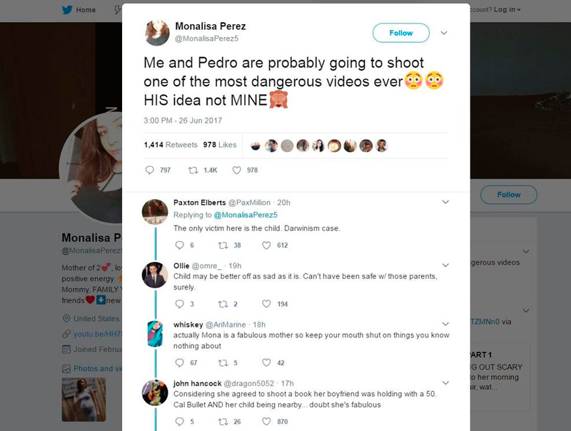 MEXICO. Una joven de Minnesota ha sido acusada de matar a su novio después de que le disparara en el pecho mientras grababan un vídeo para subirlo a YouTube. Monalisa Pérez, de 19 años, anunció en su propio perfil de Twitter que estaba a punto de grabar “uno de los vídeos más peligrosos de la historia” con su pareja, Pedro Ruiz.
