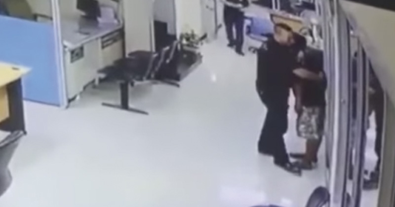El valiente oficial se acercó al ladrón poco a poco hasta que le dio el abrazo