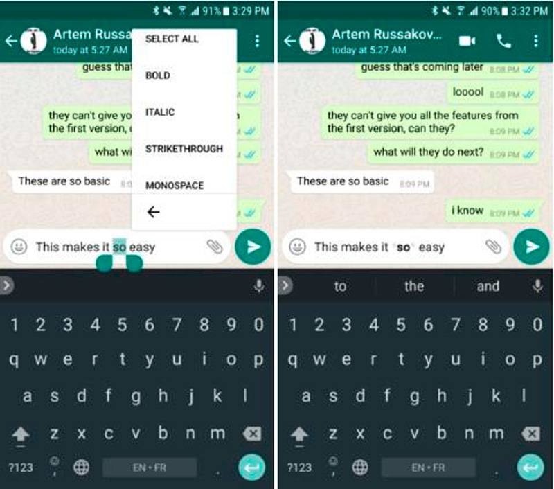 También agregaron nuevo menú contextual flotante para personalizar el estilo del texto, esto al seleccionarlo y toca el botón de tres puntos, así aparecerán las opciones de negrita, cursiva tachado y mono-espaciado.