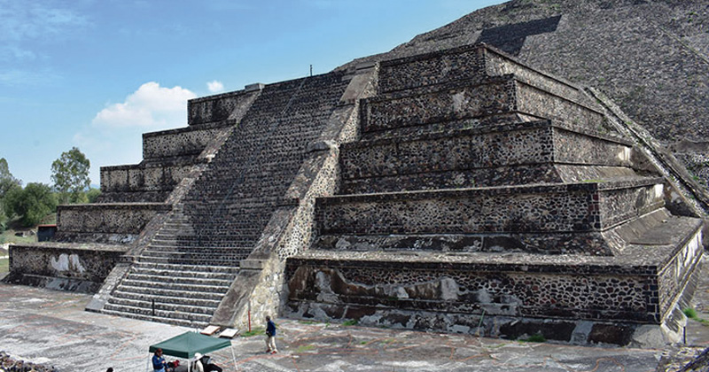 De acuerdo con una tomografía de resistividad eléctrica se trata de un conducto relleno, a 10 metros de profundidad, que iría del centro de la plaza a la Pirámide de la Luna